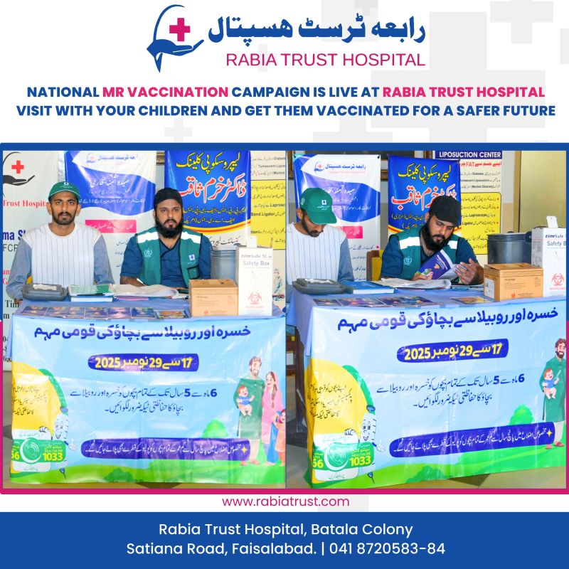 Rabia Trust Hospital successfully participated in the National Measles-Rubella (MR) Vaccination Campaign from 17th to 29th November 2025, providing children aged 6 months to 5 years with essential protection against measles and rubella.